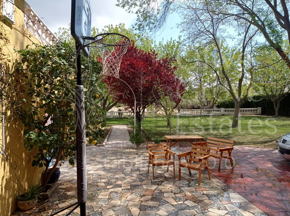 This gorgeous dwelling is located in a tranquil residential district of Castalla, a dynamic town replete with amenities, diversions, and historic sites. The property is ensconced by mature gardens showcasing elegant paving, a well-tended lawn, and an array of trees, shrubs, and flowers. The garden furnishes ample room for recreational activities or unwinding in the sun or shade. Additionally, it boasts a swimming pool, a barbecue area, a covered terrace, and roof terrace that provides breathtaking vistas of the protected natural wonderland of Sierra del Maigmó. Notably, there are large pine trees among other mature trees, offering refreshing shade during the scorching summer season.