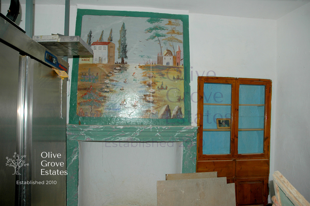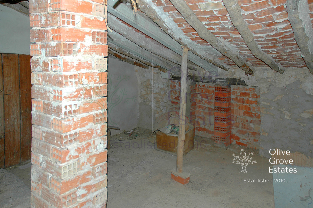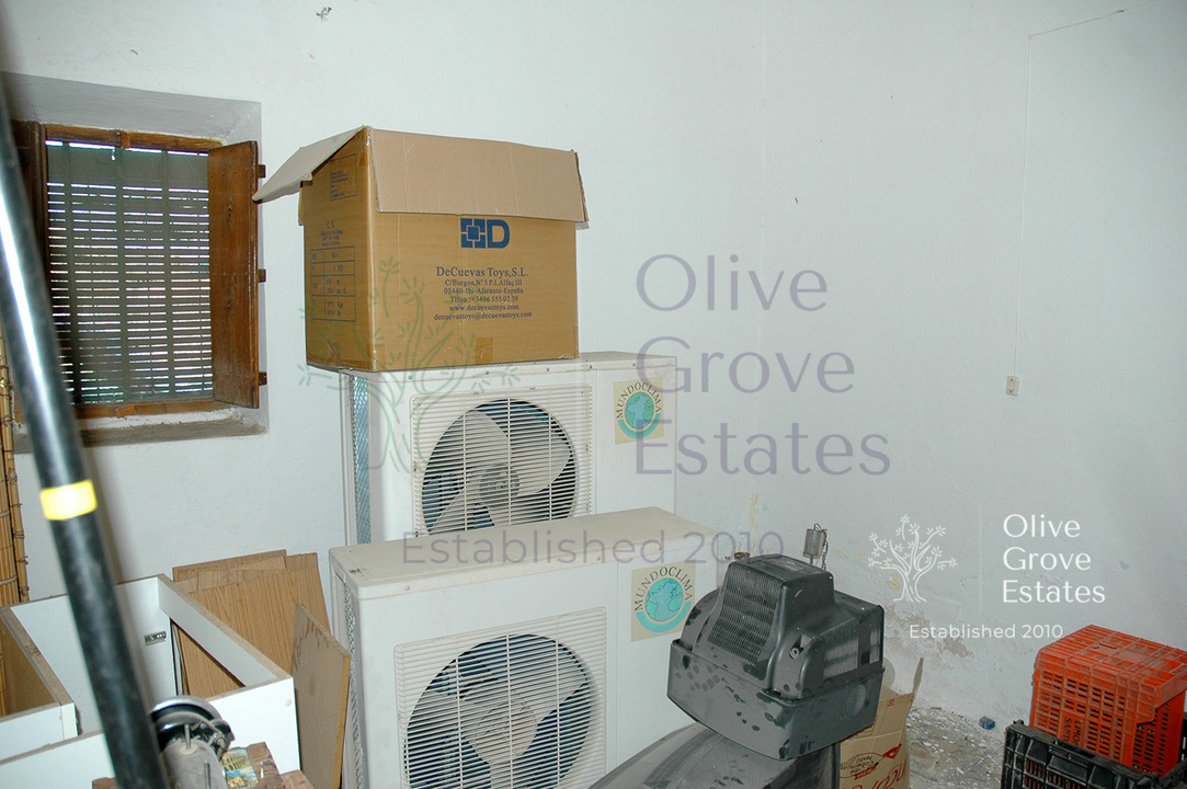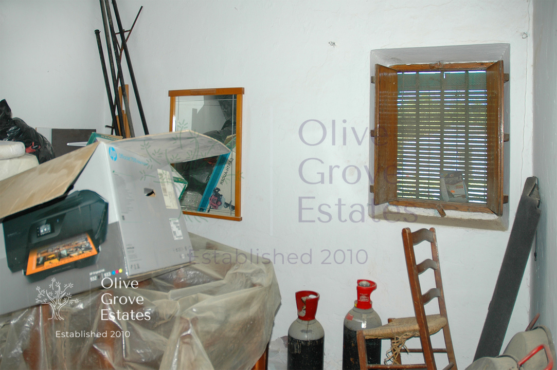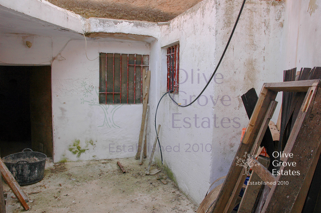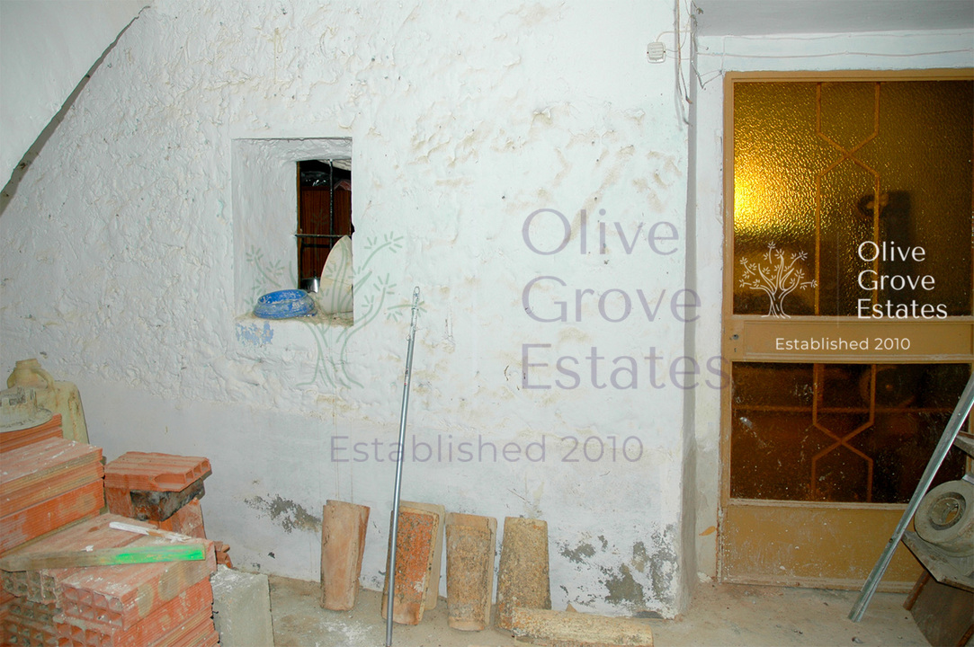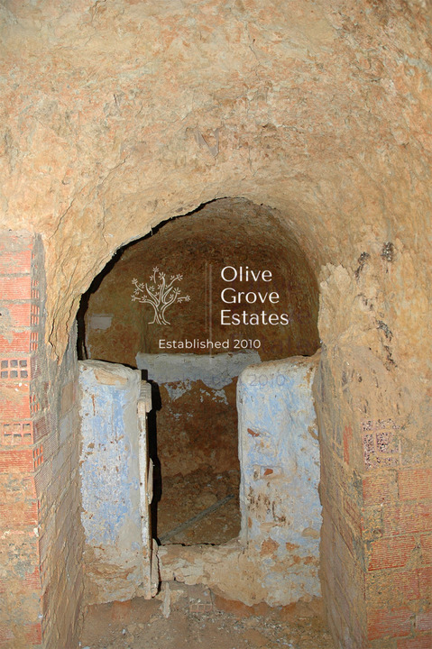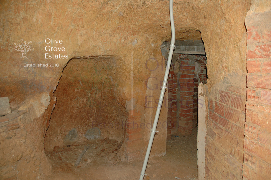 The house has 3 bedrooms, a bathroom, kitchen with a utility room and a lounge with a fireplace downstairs. There is also an internal courtyard with doors leading to the house's own cave.