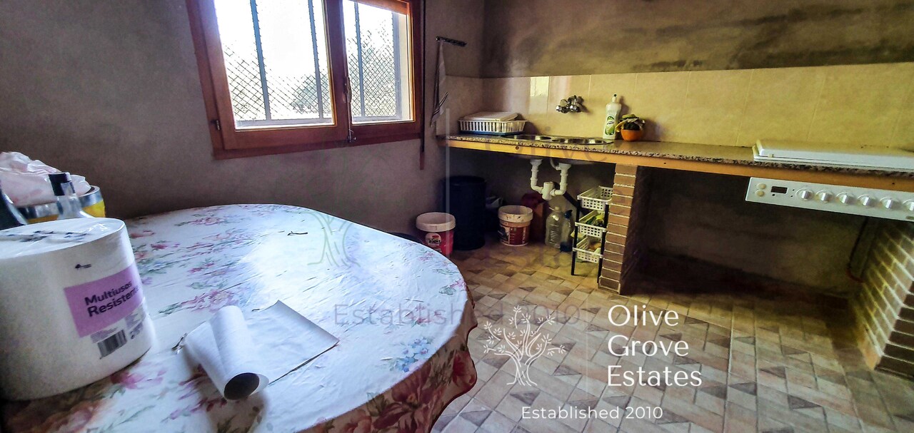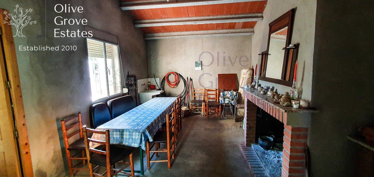 There is a well constructed finca with two rooms: a large kitchen – diner and a salon with chimenea. The finca has double glazing and shutters. There is also an outside toilet.