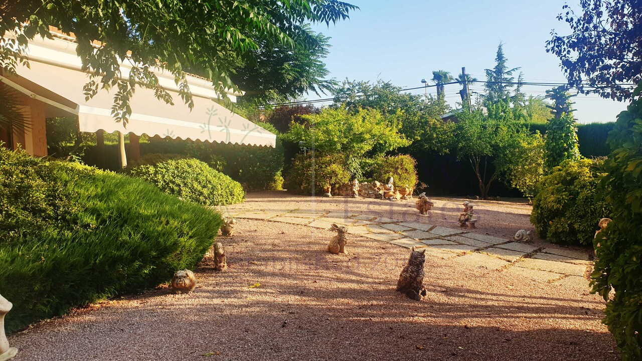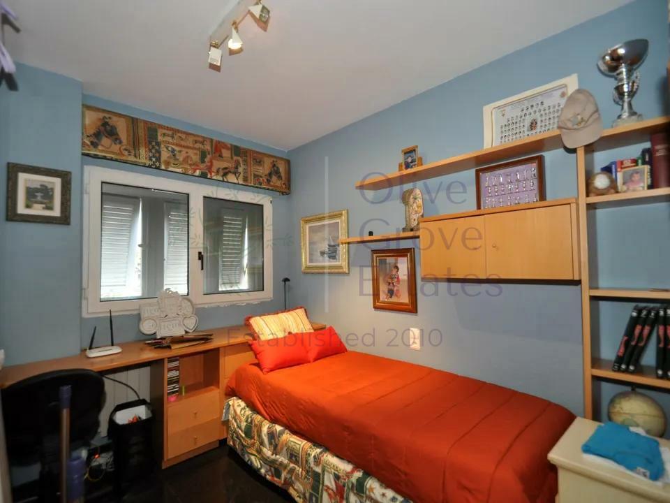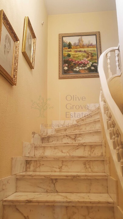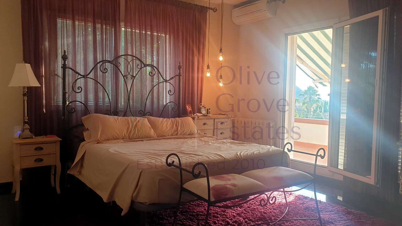 On the first floor, there are two generously proportioned double bedrooms, a single bedroom, and a full bathroom. The pièce de résistance is the master suite, which features plush built-in wardrobes, a complete en-suite bathroom with a shower and bathtub, and a vast terrace with breathtaking views of the garden and the surrounding mountains.