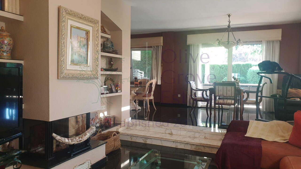Set within a secure and upscale residential community with round-the-clock security, this villa sits on an expansive plot of 1623m². Inside, the home is adorned with opulent marble floors and stairs throughout. The ground floor comprises a grand entrance hall, a spacious living room with a double-height ceiling and a fireplace that overlooks the garden and pool, a kitchen with an adjacent office space, and a guest bathroom. The basement houses a sizeable room currently being used as a bar and a gym that could effortlessly be converted into a fifth bedroom.