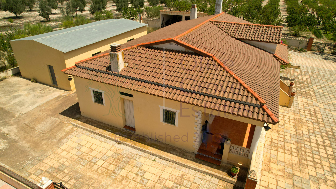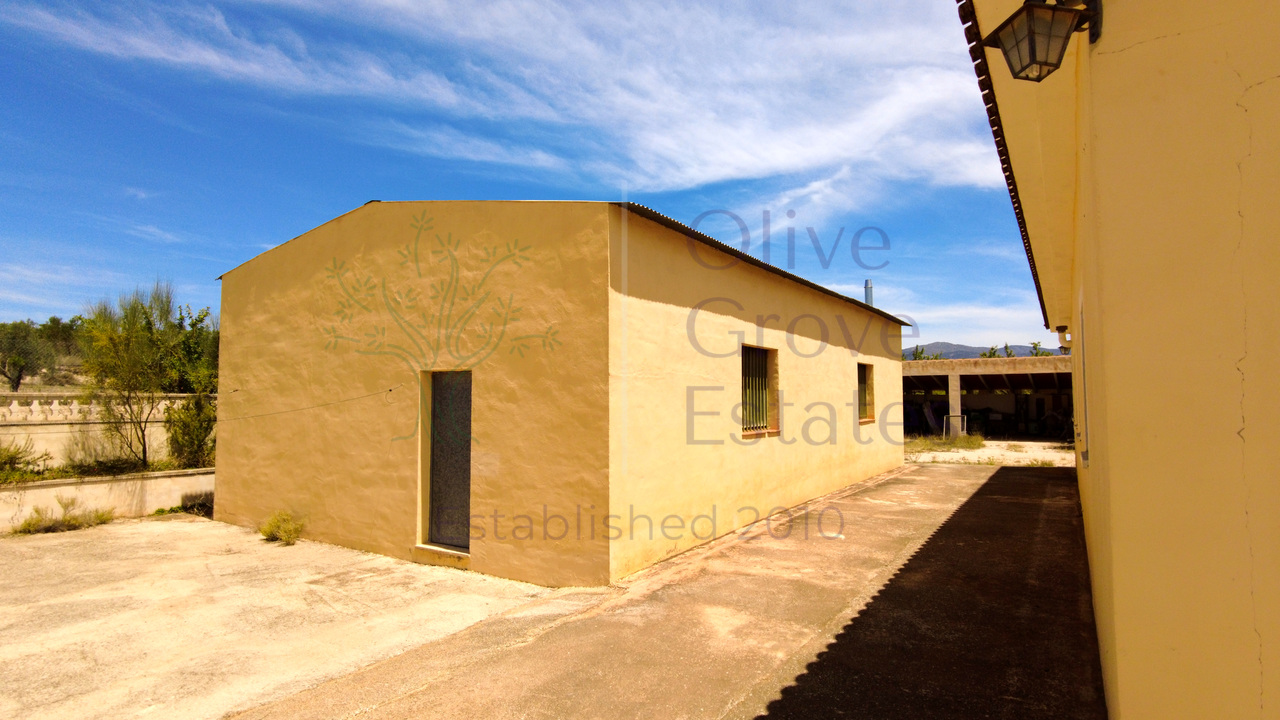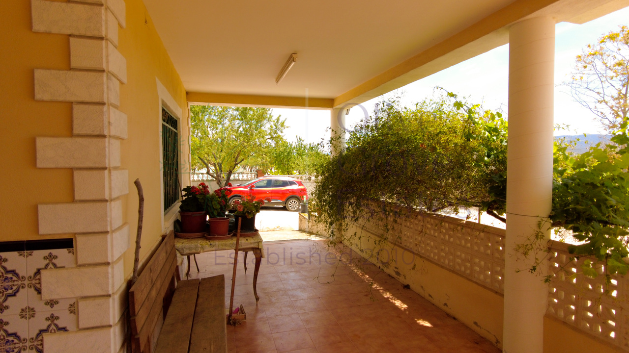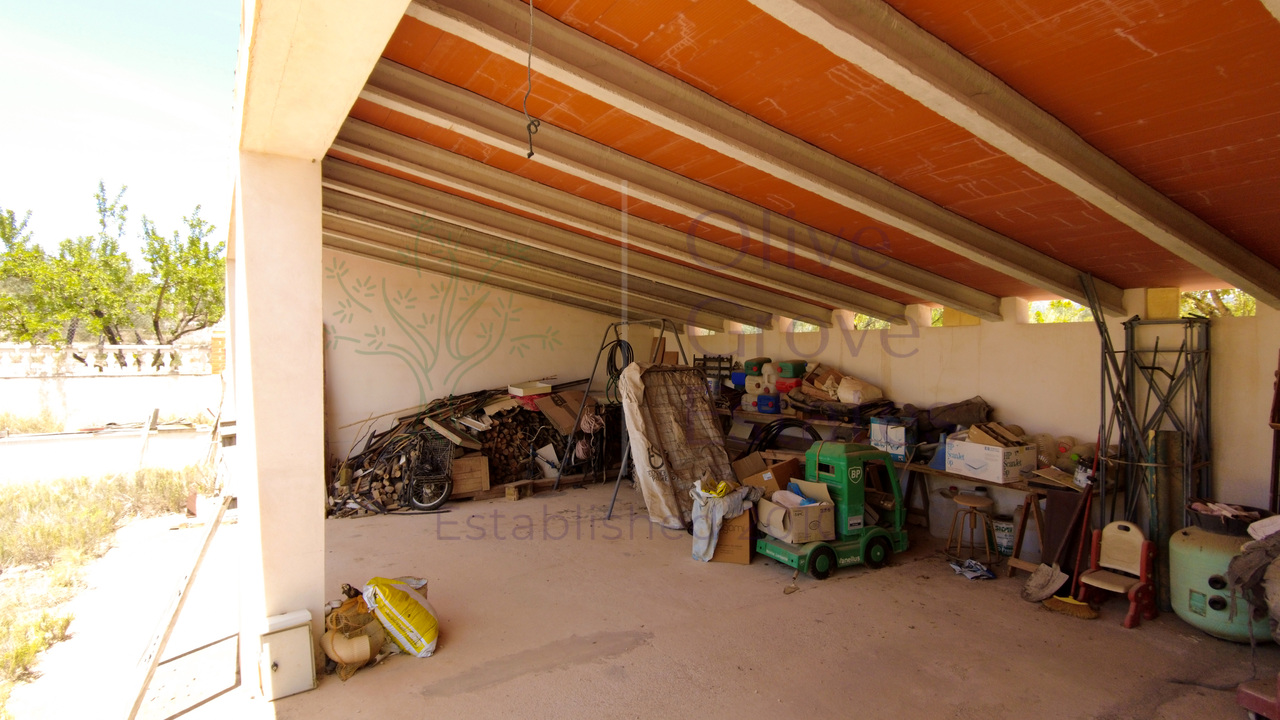 This charming villa for sale in Castalla, Alicante, features a spacious 61 m² covered patio, perfect for outdoor relaxation and dining. The property offers 4 bedrooms and 2 bathrooms, situated on a vast 23,670 m² plot adorned with olive trees and a vegetable garden, ideal for those who appreciate nature and gardening. A 100 m² warehouse with a large carport provides ample storage and parking space. The outdoor kitchen and barbecue area make it perfect for entertaining.