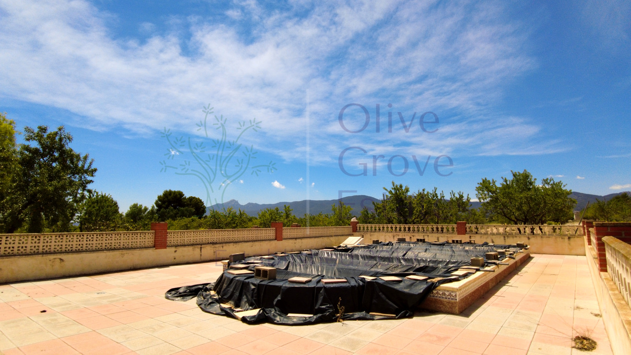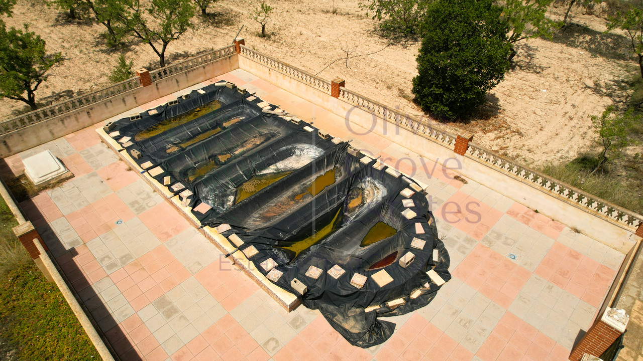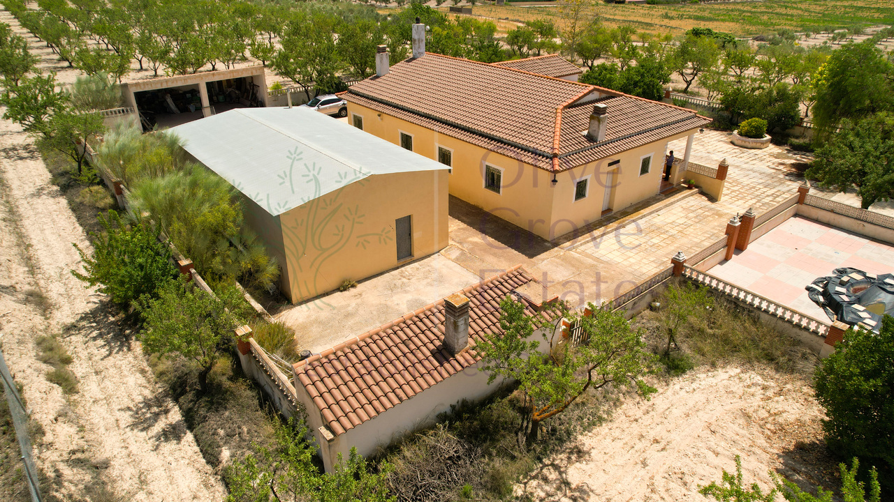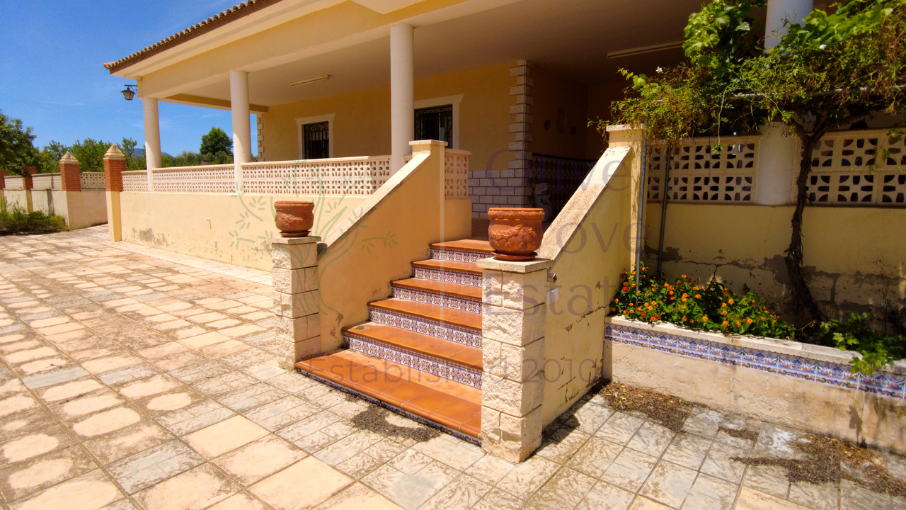 This charming villa for sale in Castalla, Alicante, features a spacious 61 m² covered patio, perfect for outdoor relaxation and dining. The property offers 4 bedrooms and 2 bathrooms, situated on a vast 23,670 m² plot adorned with olive trees and a vegetable garden, ideal for those who appreciate nature and gardening. A 100 m² warehouse with a large carport provides ample storage and parking space. The outdoor kitchen and barbecue area make it perfect for entertaining.