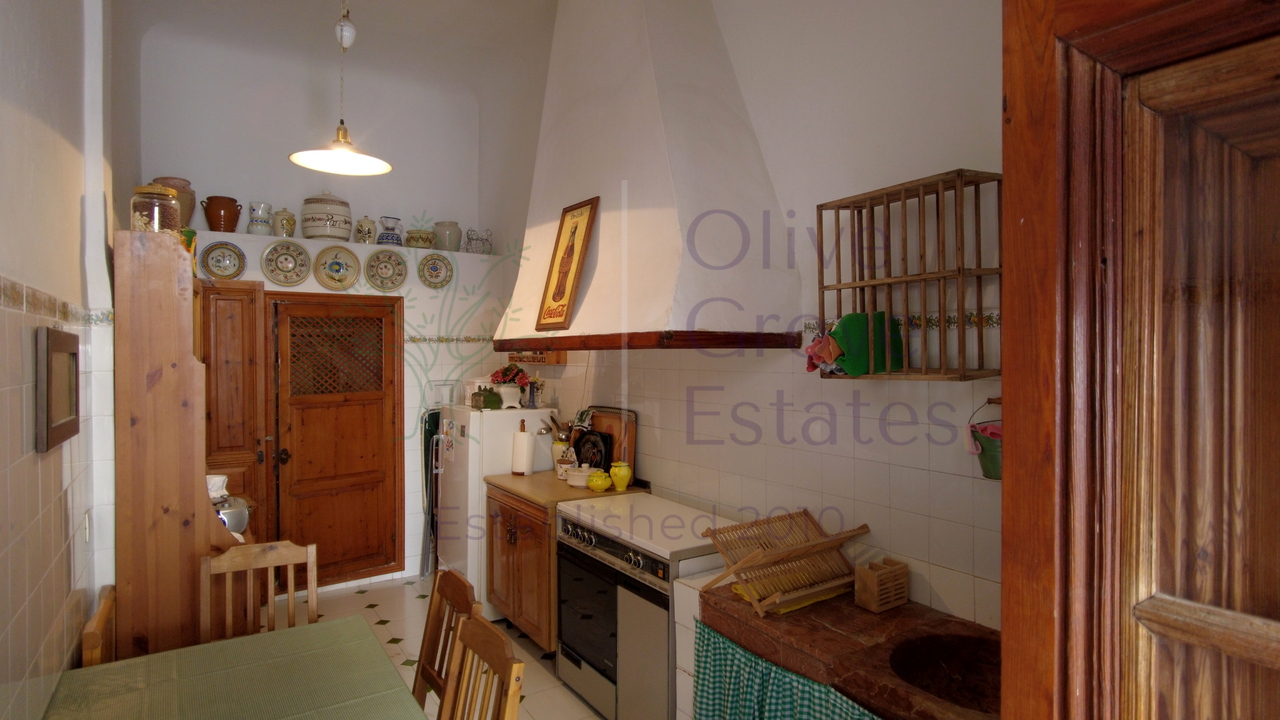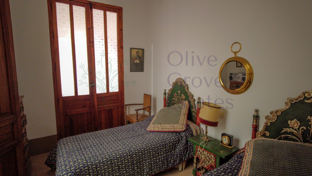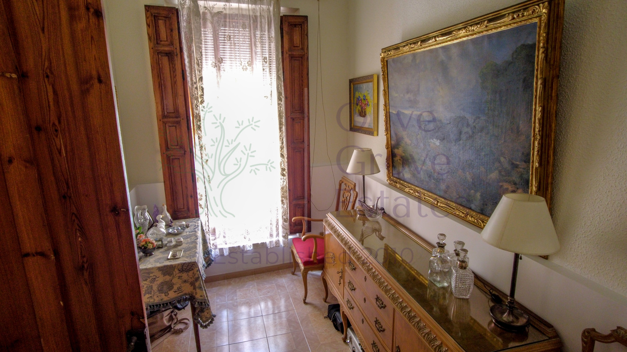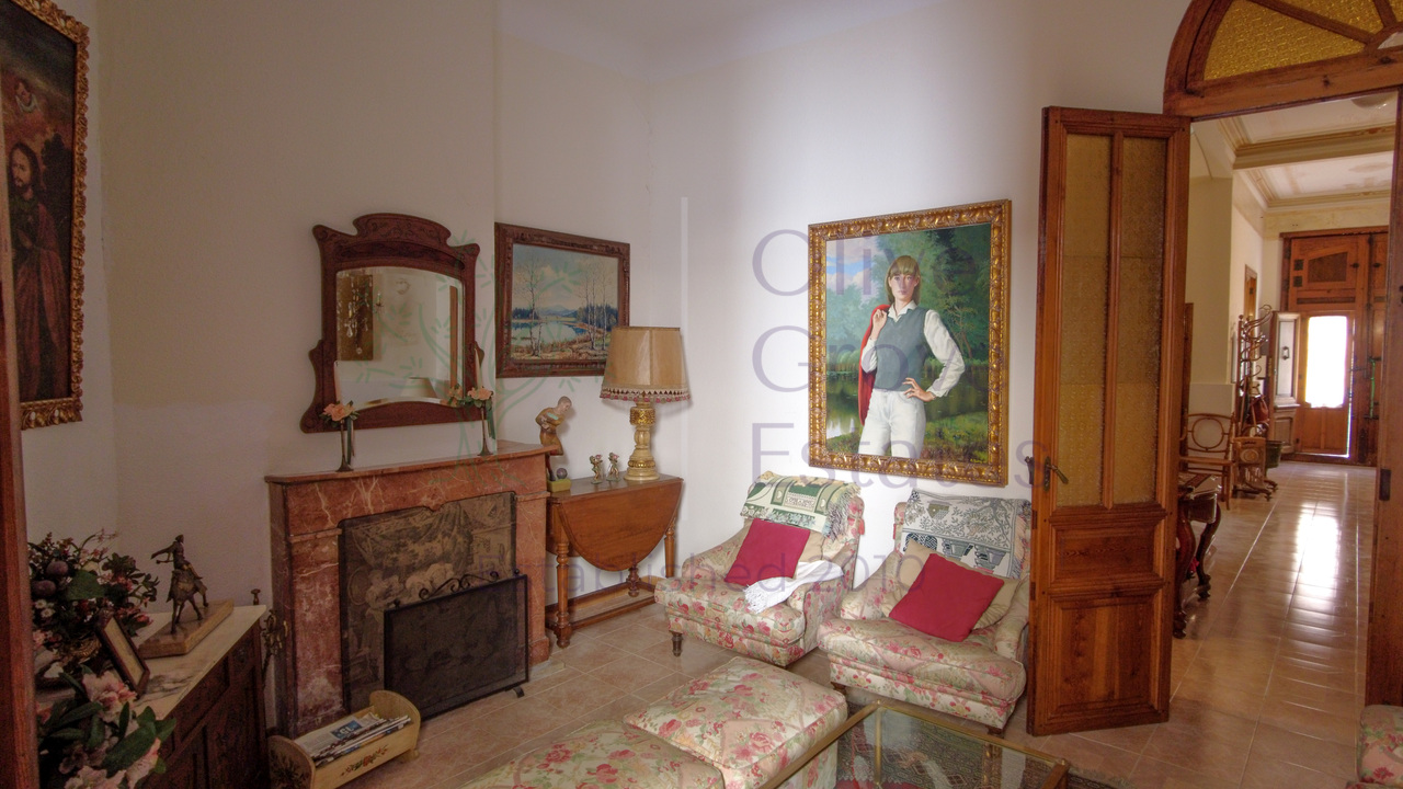 As you enter the house from the street, you enter the main hallway on the ground floor. Featured on this floor is a spacious living room adorned with a cozy fireplace, creating a warm and inviting atmosphere. Two small rooms facing the street provide versatile spaces that can be used as studies, home offices, or even guest rooms. A dining room offers ample space for family gatherings and entertaining guests. The kitchen, conveniently connected to an interior patio, provides a peaceful retreat for culinary endeavors. The interior patio is a charming and private place to relax during the hot summer evenings and also provides access to a covered roof terrace and utility room. Completing this floor is a bathroom with a bathtub, offering comfort and convenience for residents and visitors alike. The main highlight of this floor is the stunning central staircase, which spans all three floors and is bathed in natural light from the skylight on the third floor. The double-height ceilings and ornate decorations throughout the house add a touch of grandeur and elegance.