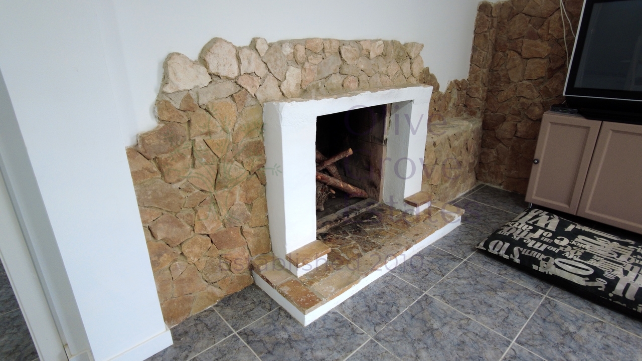 - Includes two bedrooms, a new kitchen, and a bright living area with an open fireplace.