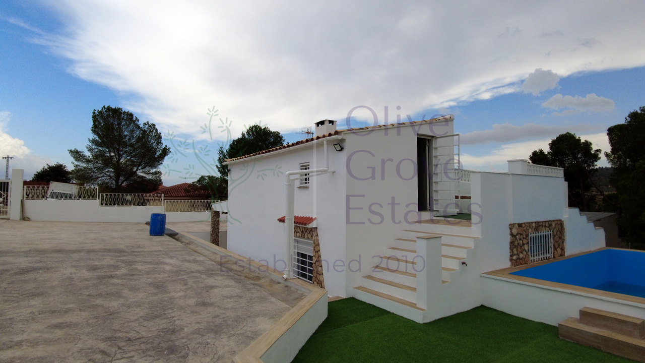 This charming off-grid property has recently been renovated to a high standard, offering 80 m² of living space and set on 9,666 m² of land. The outdoor area features a spacious barbecue zone with room for large tables, perfect for hosting family gatherings or parties. The generously sized pool has been tastefully tiled and is surrounded by two sun terraces and a sunbathing area. At the front of the property, you'll find a covered patio that leads to the lower barbecue and dining areas. There is also a great sized garage.