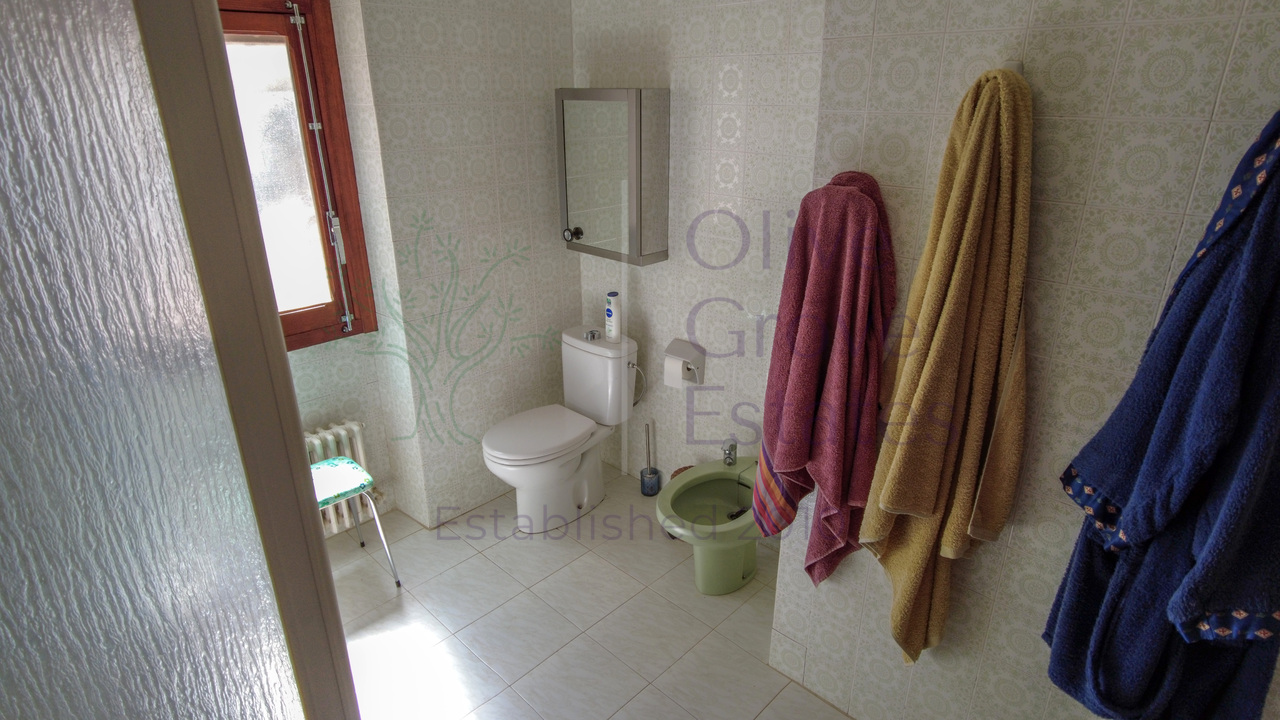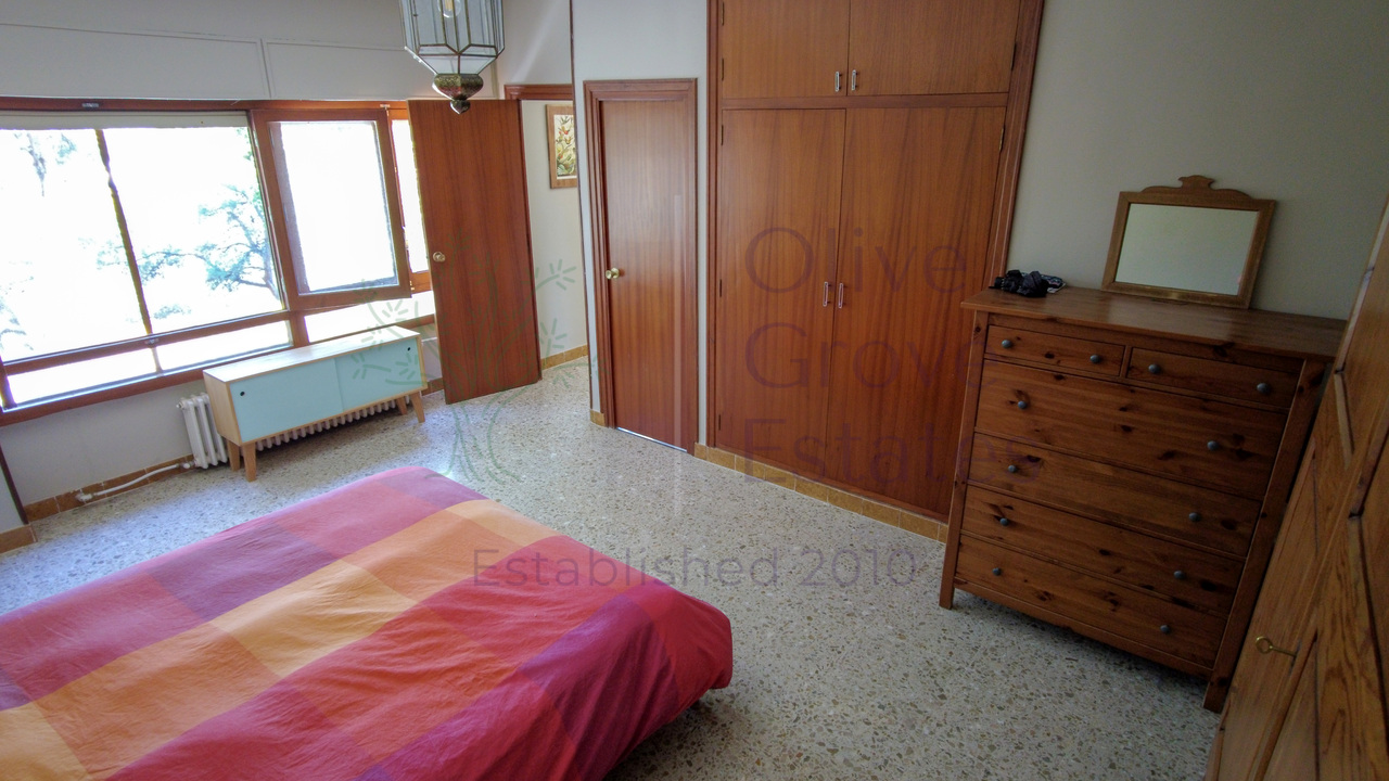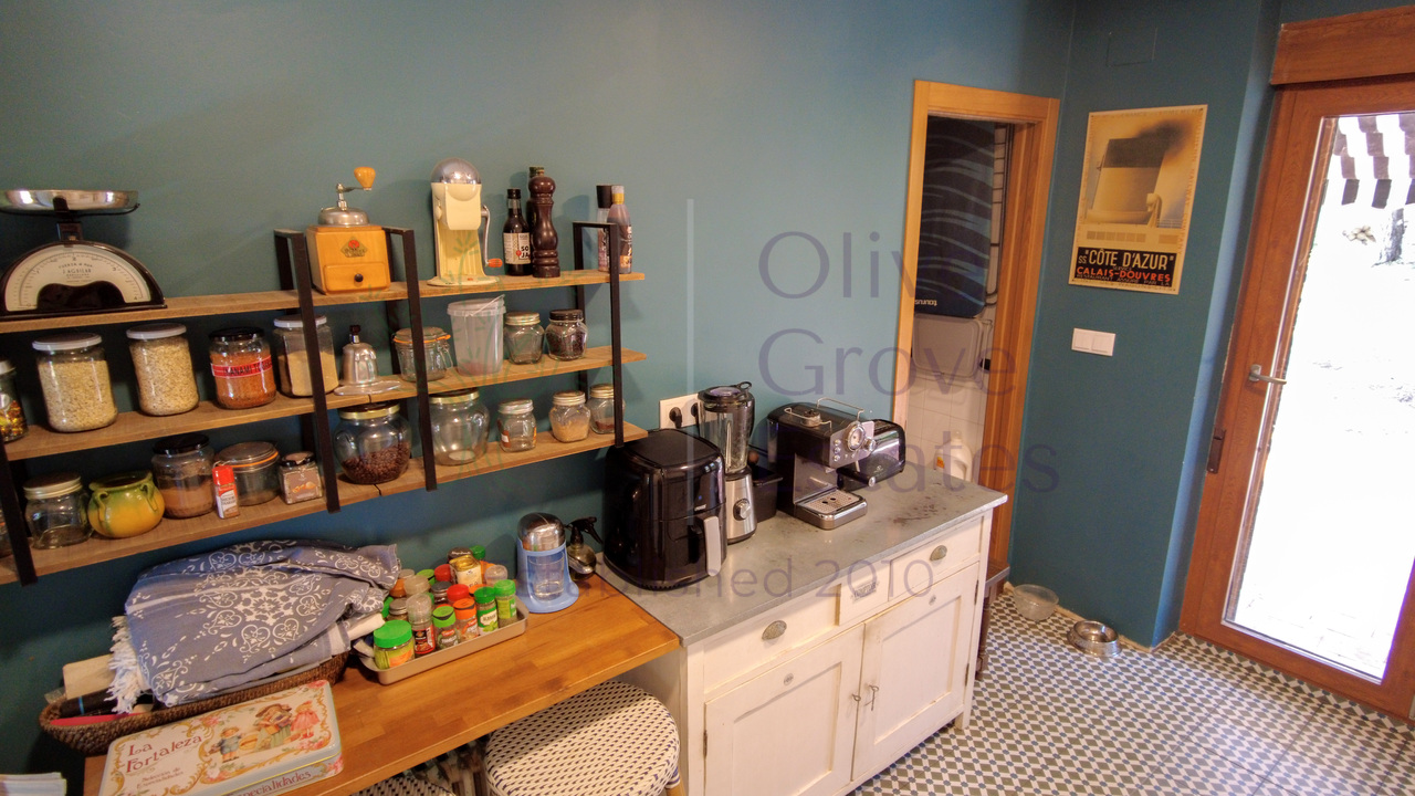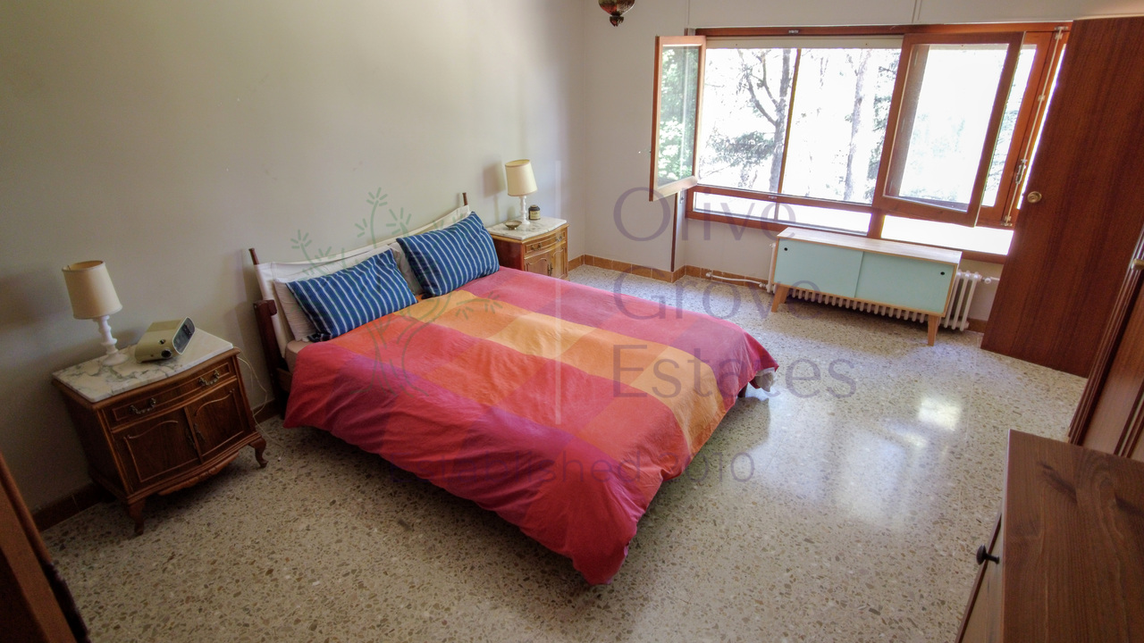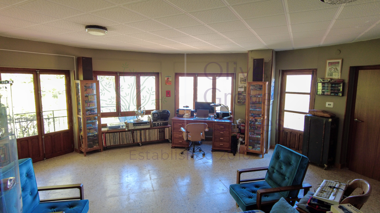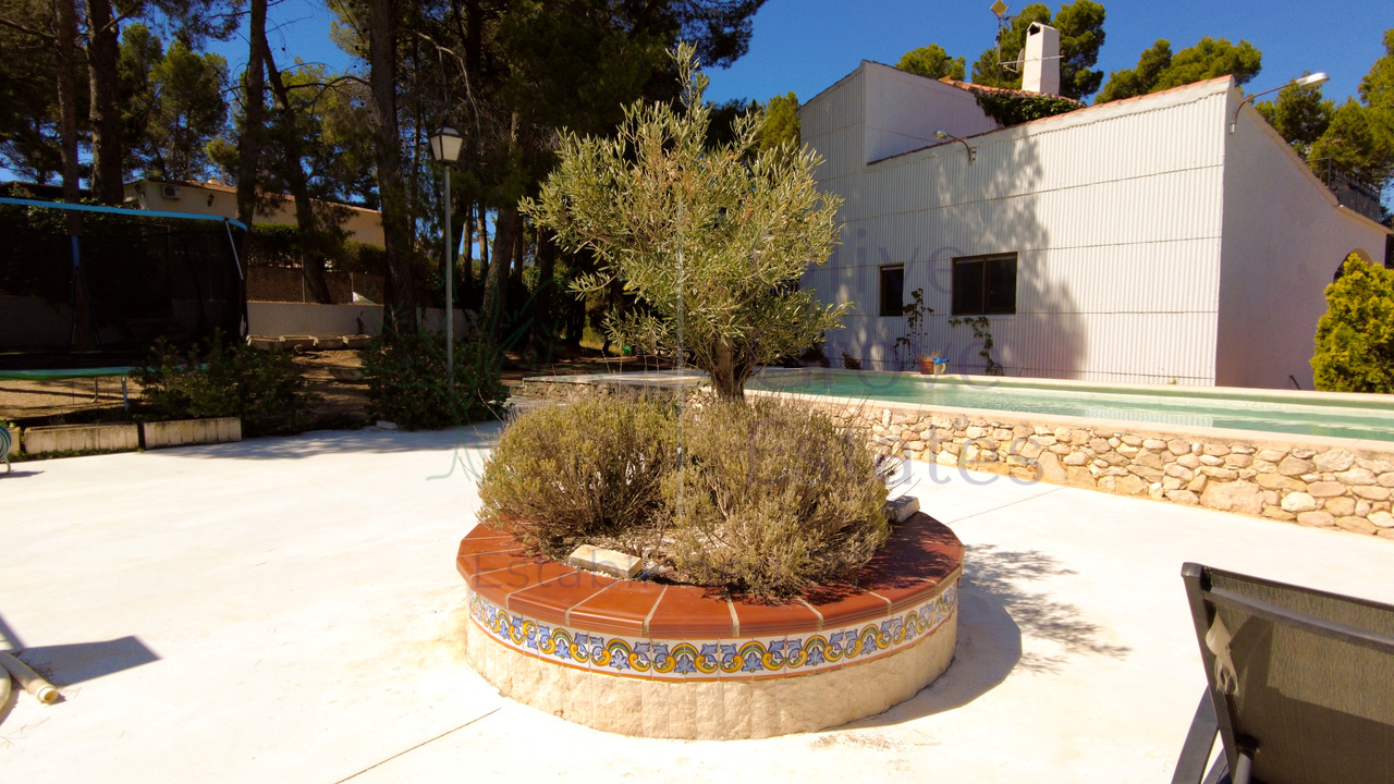 This beautiful property is nestled in a small urbanization of just six houses, situated within the protected natural area of the Sierra de Ibi, and is only 2 kilometers from the town center. It features mains water, electricity, and oil central heating throughout the house, making it suitable for year-round living. The plot spans 3,302 m² and boasts unique 1970s architecture, characterized by a central circular tower with two wings on each side.