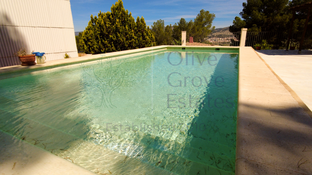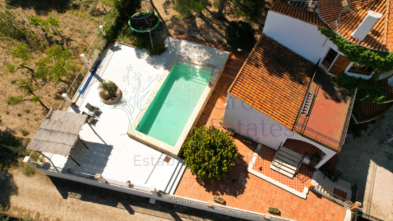 The property features two porches, one of which is covered, as well as a swimming pool with a water purifier and a wooden pergola. The area is very tranquil, with asphalted access and stunning views over the entire La Foia valley.