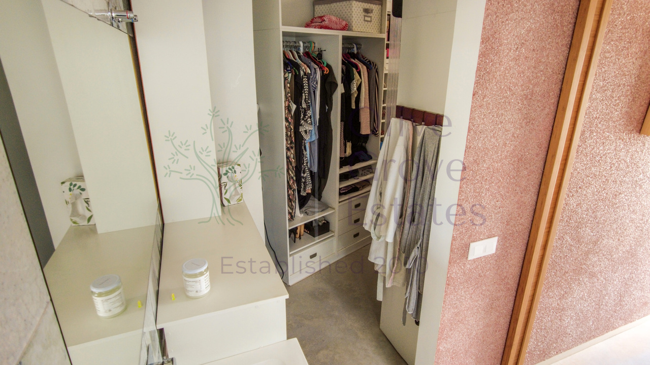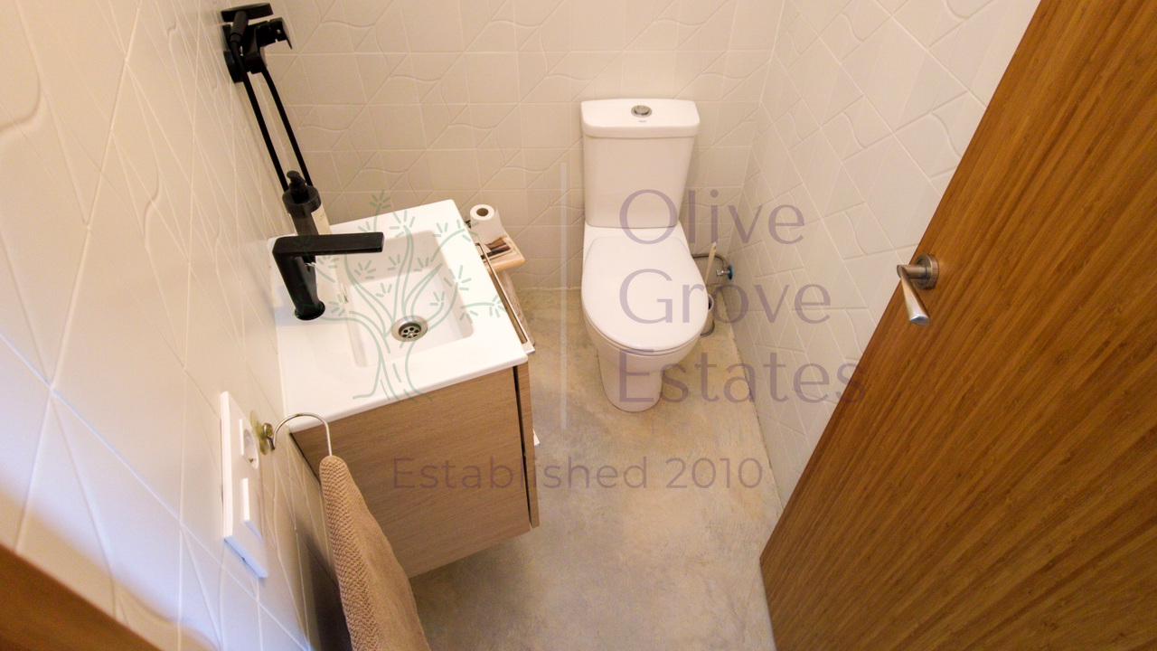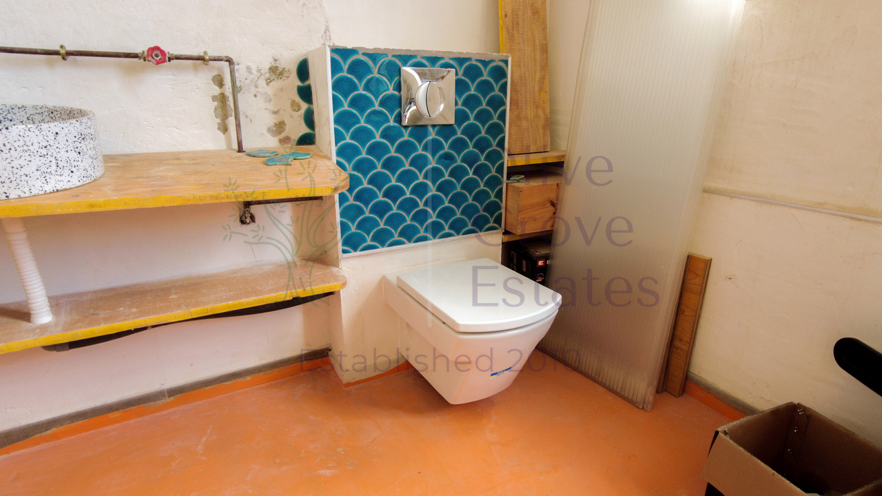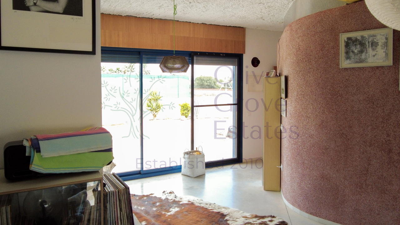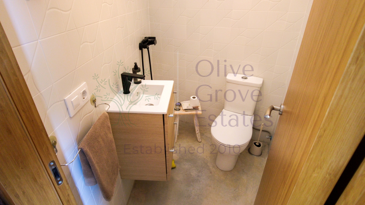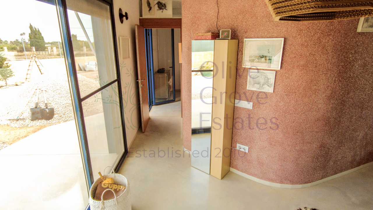 The home offers numerous extras to ensure maximum comfort and functionality. A bright kitchen comes fully equipped, while PVC interior carpentry with double glazing full glass doors that enhances both insulation, style and gives you a wonderful indoor-outdoor place to cook. With features like microcement flooring, underfloor heating, central air conditioning, and a heat and cold pump, this property is designed for year-round enjoyment. High ceilings and an armored door add both charm and security, while solar panels, rainwater collection tanks, and a biological purifier highlight the home’s eco-friendly approach.