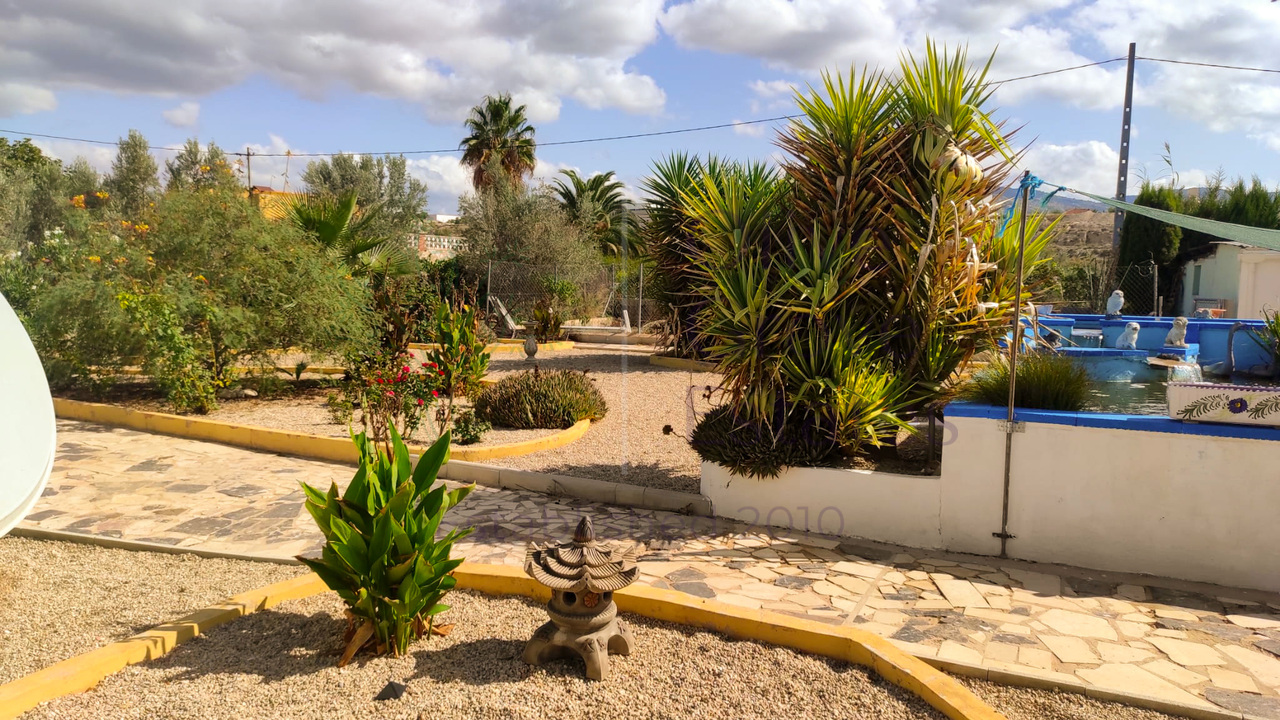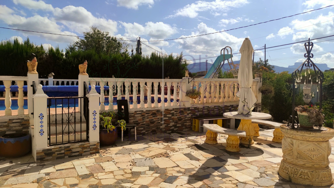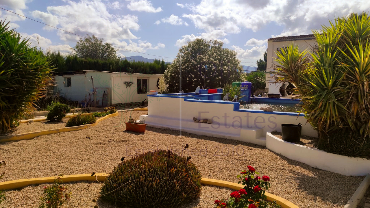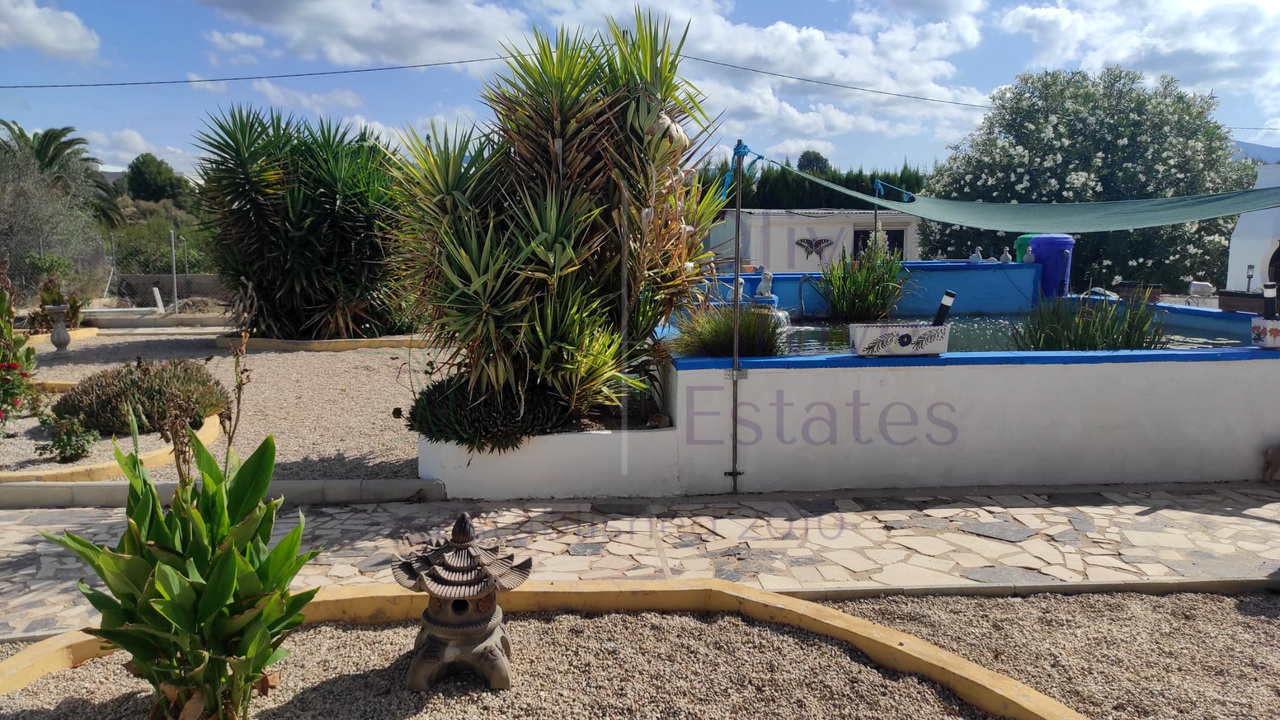 We take great pleasure in introducing this stunning 6-bedroom, 3-bathroom chalet featuring a private pool in the picturesque location of Sax, Alicante. The primary residence is in exceptional condition, and the mature garden is meticulously maintained. This property encompasses a spacious two-story house, a generously sized garage, two workshops, a private swimming pool, and a charming fishpond.