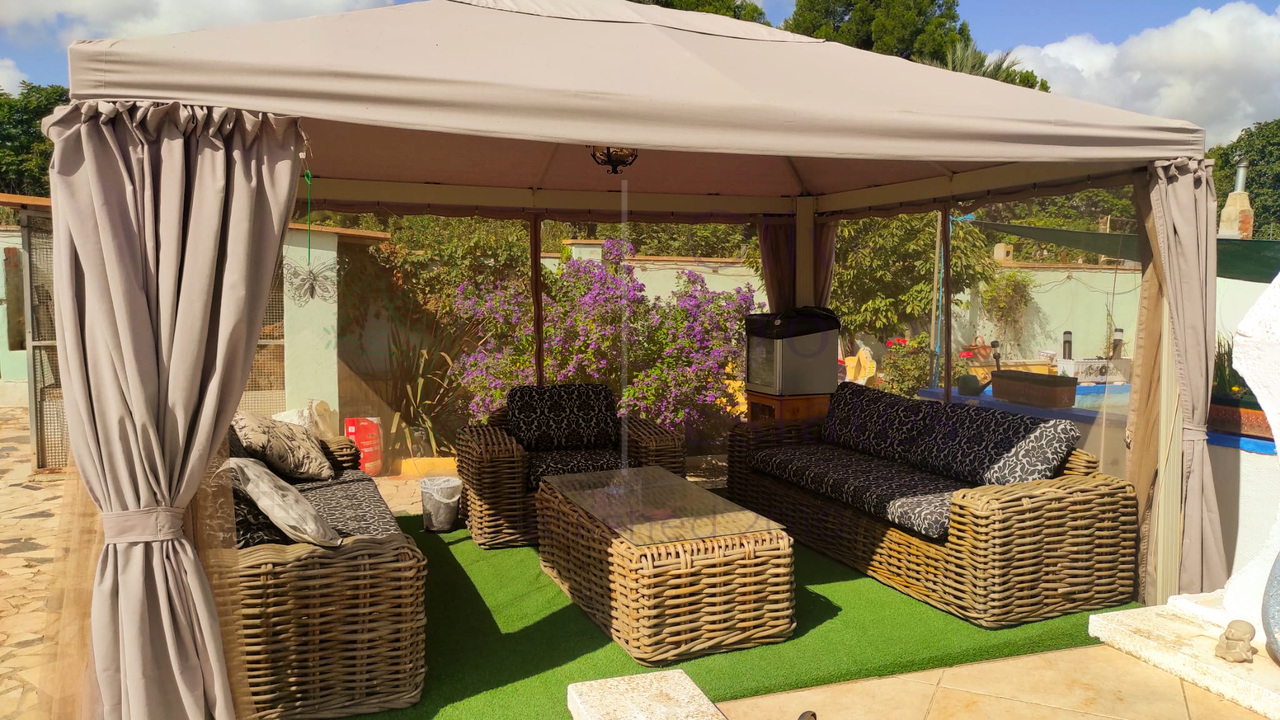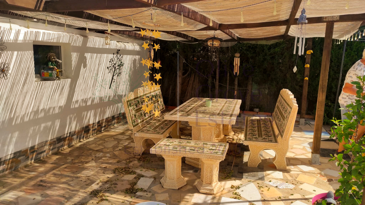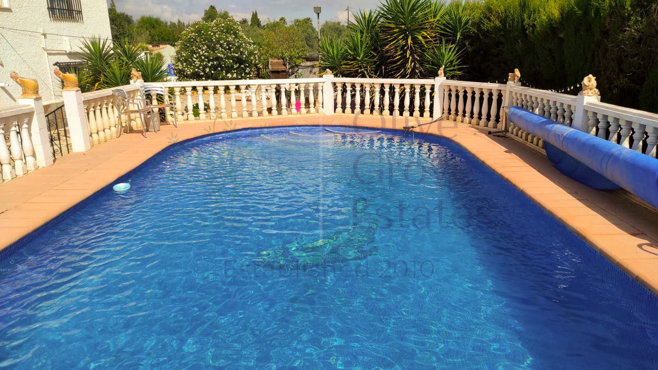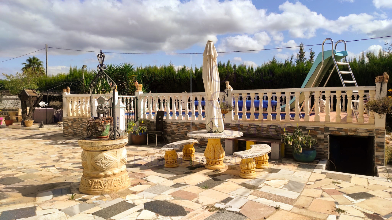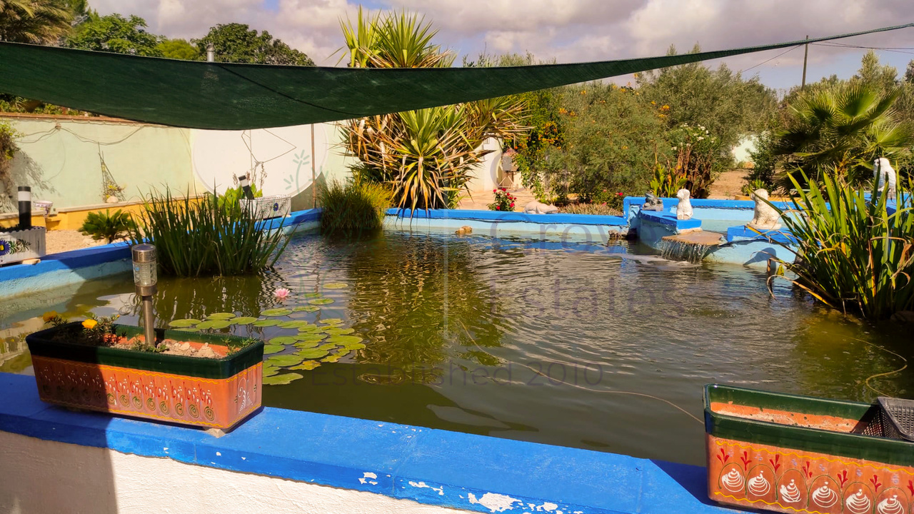 We take great pleasure in introducing this stunning 6-bedroom, 3-bathroom chalet featuring a private pool in the picturesque location of Sax, Alicante. The primary residence is in exceptional condition, and the mature garden is meticulously maintained. This property encompasses a spacious two-story house, a generously sized garage, two workshops, a private swimming pool, and a charming fishpond.