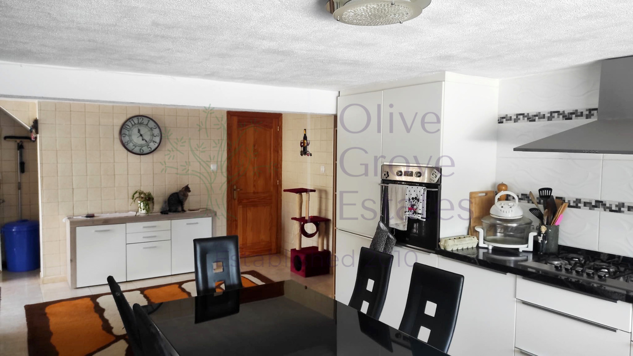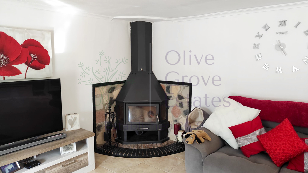 The primary 180m² house, as previously mentioned, has been tastefully refurbished to an impressive standard. The ground floor comprises a spacious living room with a cozy log burner, an expansive kitchen and dining area, an office, a bathroom with both a bathtub and a shower, and a single bedroom. Two staircases lead to the upper level, with one leading to the remarkable main bedroom and the other leading to a hallway that grants access to four additional bedrooms. Among these bedrooms is one with an ensuite bathroom for guests, and there is another family bathroom with both a shower and a bathtub.
