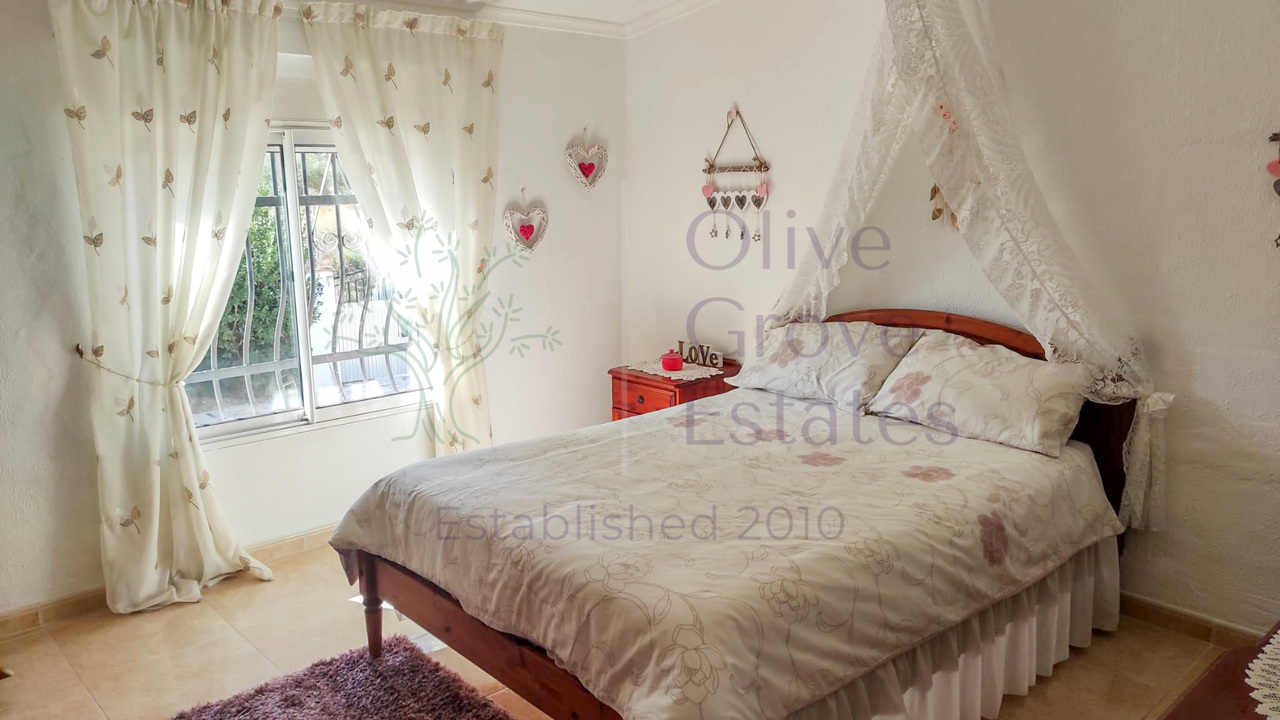 The mature garden is a delightful outdoor space adorned with indigenous plants, fruit trees, olive trees, and meticulous landscaping that divides the garden into distinct areas. You will also find a recently renovated swimming pool, a shaded area with a jacuzzi, a comfortable seating area, and a charming fishpond.